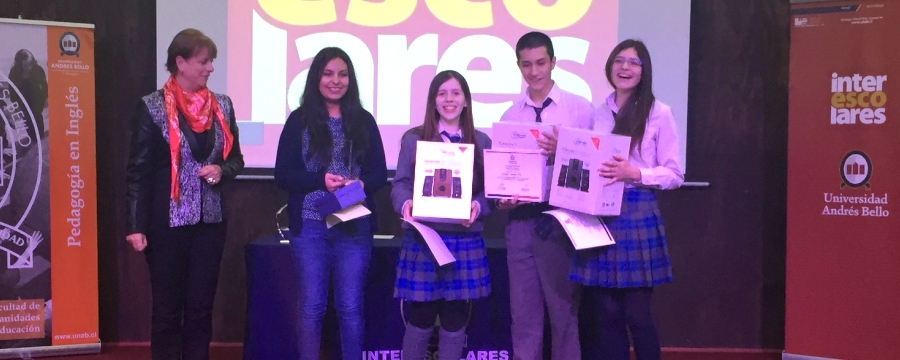 El equipo compuesto por los alumnos: Ivonne Vallejos(4MA), Critóbal Manzor (4MA) Y Mariana Hormazábal (3MB), se adjudicó el tercer lugar en la competencia de Spelling Bee que se llevó a cabo como parte de los Interscolares de la Universidad Andrés Bello. En esta competencia participaron 25 equipos en la categoría Intermedio- Avanzado, provenientes de distintos colegios de la Provincia.