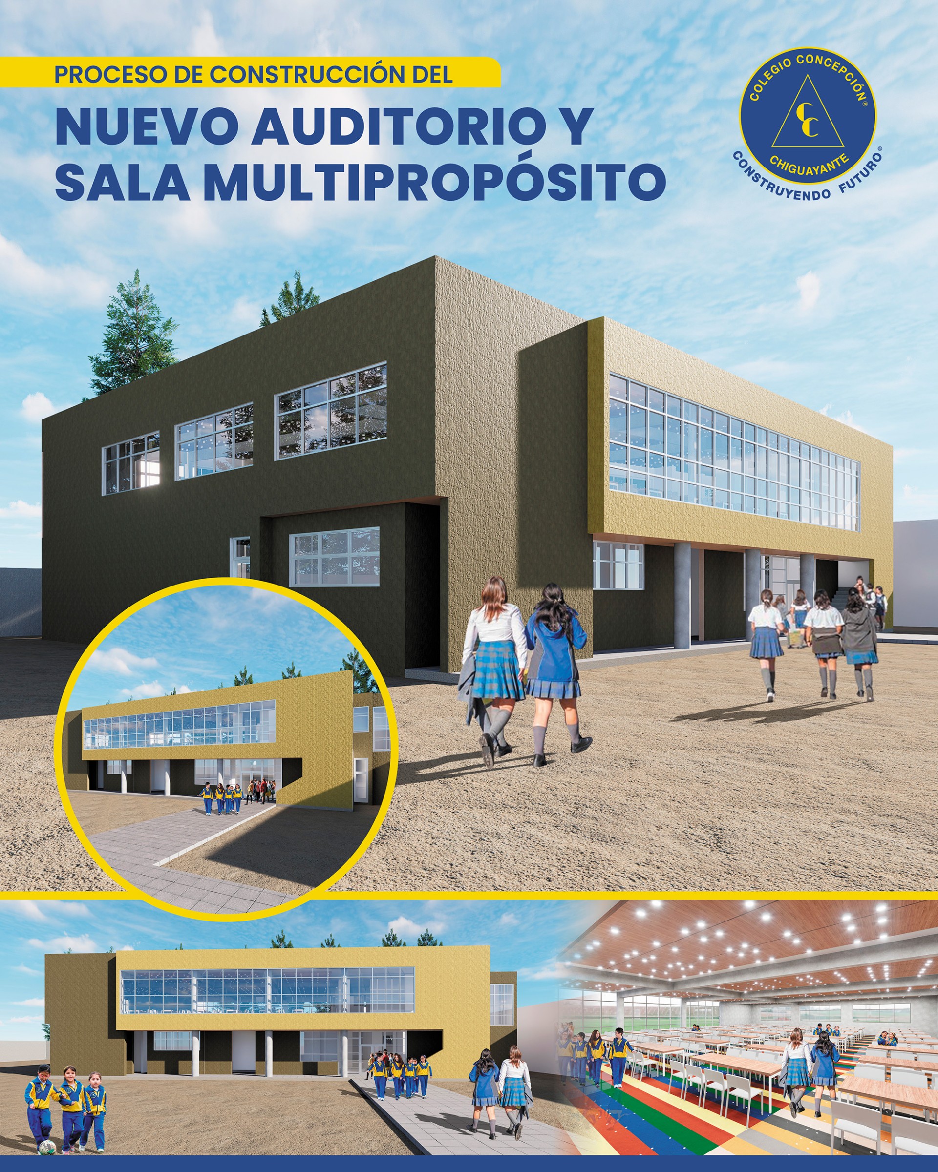 Se comunica a las Madres, Padres y Apoderados del Colegio Concepción Chiguayante que la Corporación Educacional Masónica de Concepción iniciará el proceso de la construcción del nuevo auditorio y sala multipropósito de nuestro establecimiento. Este espacio estará destinado al desarrollo de diversas actividades y al uso compartido por parte de nuestros estudiantes, fortaleciendo así su formación y participación en un entorno moderno y adecuado para sus necesidades.