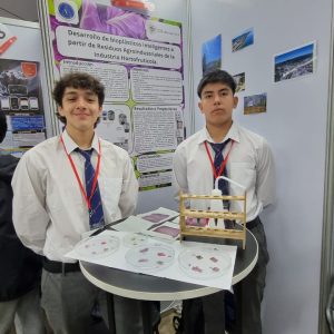 El segundo proyecto, “Desarrollo de Películas Inteligentes a partir de Residuos Agroindustriales de la Industria Frutícola y Vitivinícola”, estuvo a cargo de los estudiantes de tercero medio Ignacio Mendoza Hechenleitner y Agustín Fernández Figueroa. Esta investigación aborda la creación de bioplásticos inteligentes a partir de desechos orgánicos, destacando su potencial para reducir el impacto ambiental y promover la economía circular.